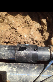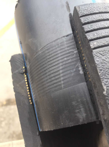 處理方法:焊接時時刻觀察電熔焊機電流變化,發(fā)現(xiàn)電流上升,說明焊接區(qū)域銅絲并絲,應(yīng)立即停止焊接,記錄焊接剩余時間,根據(jù)剩余時間決定是否降低電壓補焊。特別注意,如果因操作不當(dāng)引起內(nèi)部著火現(xiàn)象,應(yīng)就地取材封堵管材兩頭,使內(nèi)部真空,火自然熄滅。
